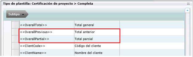 Nuevos marcadores en plantillas de Certificación de Proyecto para certificaciones parciales