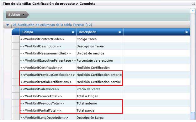 Se devuelve en esta etiqueta el importe certificado para la Tarea en la Certificación anterior - <<WorkUnitPartialTotal>>