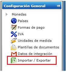 Para poder utilizar esta funcionalidad, se debe acceder al formulario localizado en Módulo Configuración General > Importar / Exportar